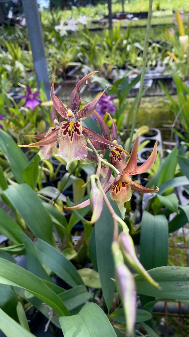 長萼蘭(Bra.)是一種獨特的蘭花,以其特異的花型和花朵的長度而聞名。這些花朵的形狀酷似蜘蛛,因又常被稱為“蜘蛛蘭”。它們原產於中美洲和南美洲的熱帶雨林中,喜歡溫暖、濕潤的生長環境。花色多樣,從黃色到綠色,甚至是棕色,常帶有迷人的斑點或條紋。不僅外觀迷人,略有香氣,是蘭花愛好者中的熱門選擇。