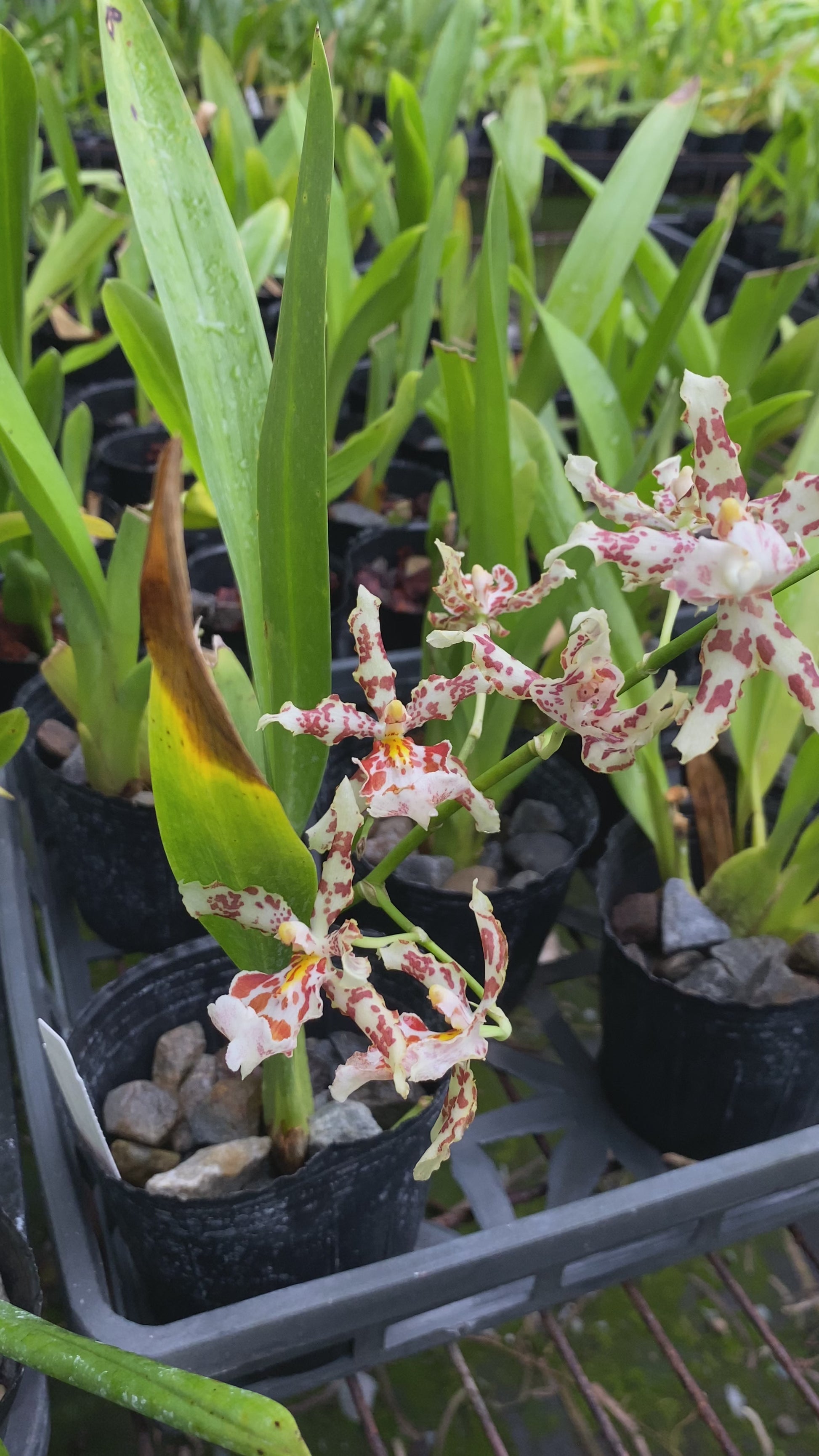 瓣為白色、帶有棕紅色斑點、唇瓣為白色、帶花有橙色斑紋 / 白い花びらに赤茶色の斑点があり、白い唇にオレンジ色の縞模様と模様があります。